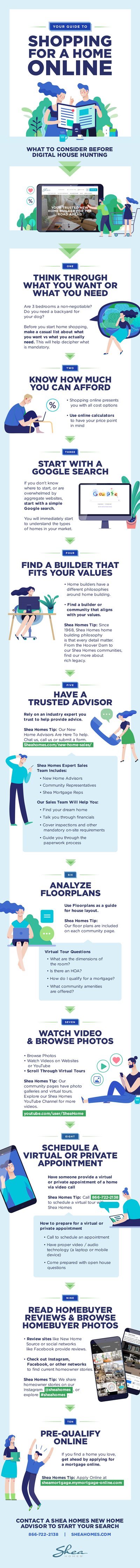 We know shopping for a home online is not as easy as finding the one you love and instantly adding it to your virtual shopping cart. There are still some traditional house hunting processes, like touring the floorplan and asking questions, that are needed even when shopping online. Luckily, Shea Homes is here to help provide you with a guide to seamless virtual home shopping.